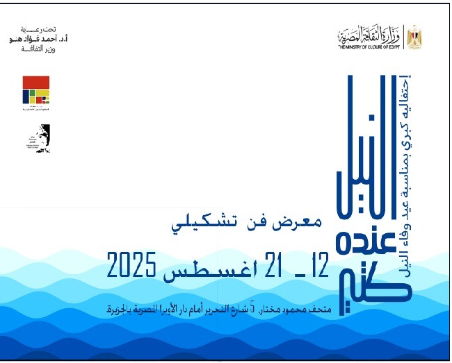 ويُعد هذا المعرض واحدًا من سلسلة أنشطة ثقافية وفنية تنظمها وزارة الثقافة بالتعاون مع مؤسسات الدولة احتفاءً بالنيل، باعتباره أحد أبرز مكونات الشخصية المصرية وركيزة أساسية في بناء حضارتها على مر العصور.