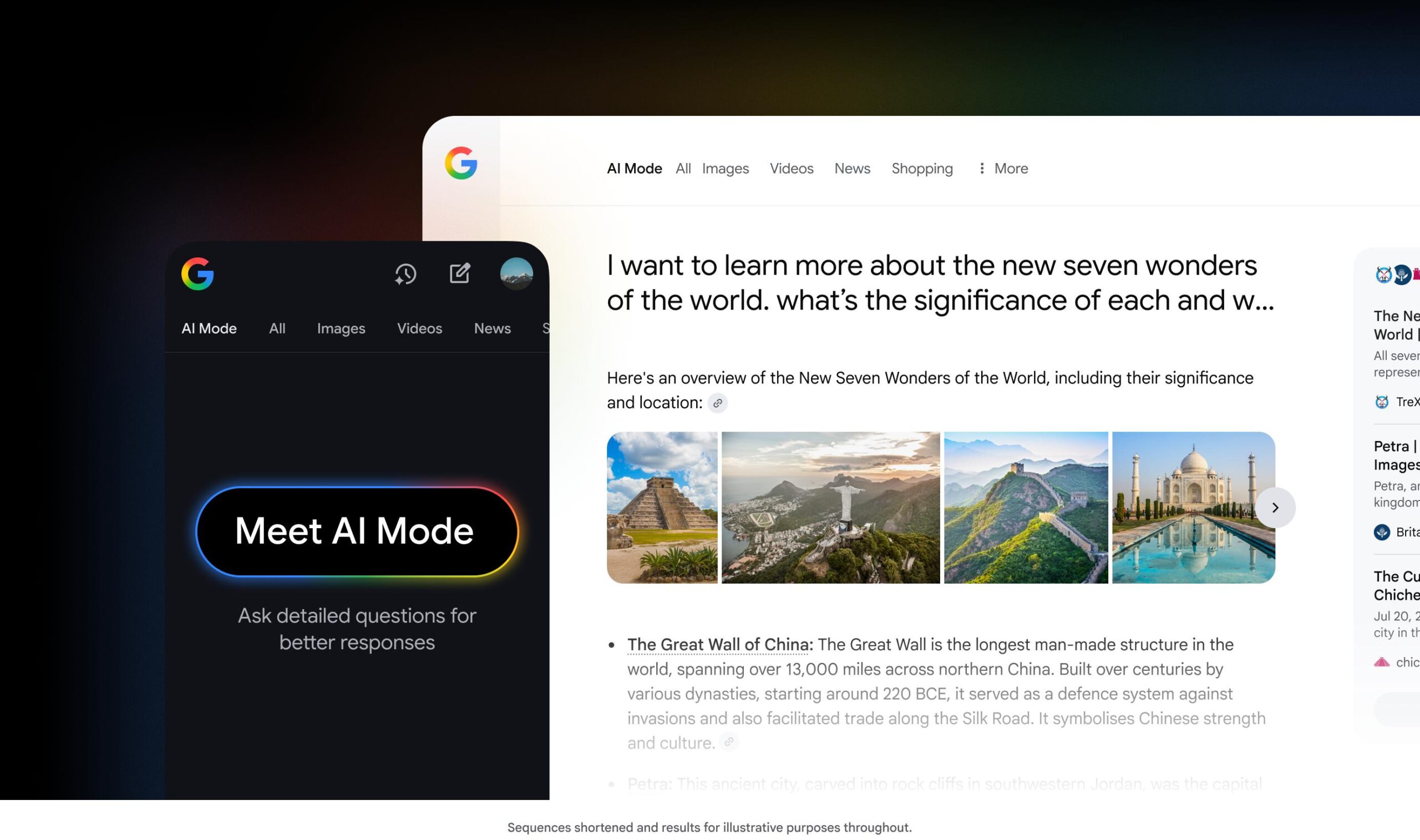 باستخدام إصدار مخصّص من أحدث نموذج لدينا، وهو Gemini 2.5، يتيح لك هذا الوضع طرح أسئلة دقيقة كان يتطلب البحث عنها في السابق استخدام طلبات بحث متعددة. هذه الميزة مفيدة جدًا للأسئلة الاستكشافية والمهام الأكثر تعقيدًا، مثل مقارنة المنتجات أو التخطيط لرحلة أو فهم إرشادات معقدة. وقد لاحظنا أن المستخدمين الأوائل لهذا الوضع يطرحون أسئلة يزيد طولها بمرتين أو ثلاث مرات عن طلبات البحث التقليدية.