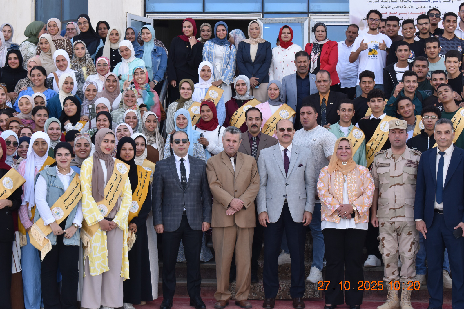 جاء ذلك بحضور الدكتور أحمد عزب، رئيس الجامعة، والدكتور خميس محمد خميس، المشرف العام على قطاع شئون التعليم والطلاب والمستشار أحمد سرور، مستشار رئيس الجامعة والدكتور عماد زكريا أمين عام الجامعة، والدكتورة أماني شبل، عميدة الكلية والعقيد أمير يسرى، مدير إدارة التربية العسكريه، وعدد من أعضاء هيئة التدريس والعاملين والطلاب.