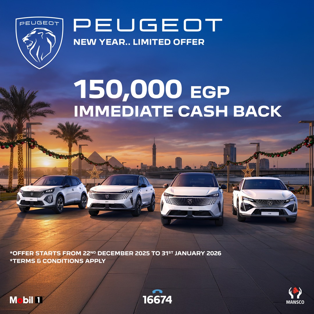 بيجو تحتفل بالعام جديد ب150,000 جنيه كاش باك على جميع موديلات 2026