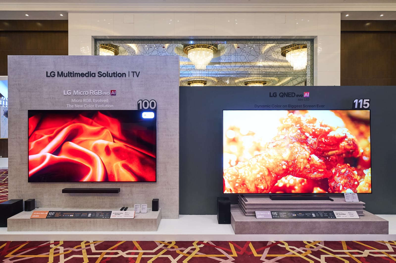كشفت “إل جي” أيضاً عن أكبر شاشة لها حتى الآن QNED evo AI بحجم 115 بوصة وصُممت هذه الشاشة العملاقة لتقديم تجربة سينمائية منزلية مذهلة، تغمر المشاهدين بألوان نابضة بالحياة وصور واقعية مدعومة بمعالجة صور متطورة بتقنية الذكاء الاصطناعي، إضافةً إلى تقنية عرض الألوان بنسبة 100% التي تُبرز كل لون بكامل روعته.