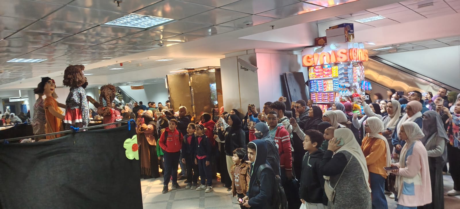 استقبل الركاب فجأة فرجة شعبية نابضة بالحياة وعلى غير انتظار، ملأت دمى الأراجوز الخشبية الفضاء بحركاتها المبهجة وحواراتها المرحة، لتحوِّل لحظات الانتظار اليومية إلى استراحة فنية عفوية داخل مترو الجامعة.